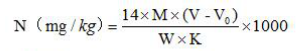 V-樣品滴定標準酸消耗量(mL),精確到小數點后四位